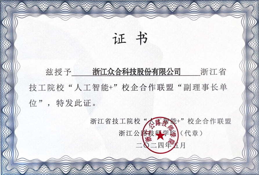近日,浙江省首个技工院校“人工智能+”校企合作联盟——浙江省技工院校“人工智能+”校企合作联盟在浙江公路技师学院正式成立。众合科技荣幸加入该校企合作联盟,并被授予副理事长单位。众合科技全资子公司众合科创孵化器被授予秘书长单位。
