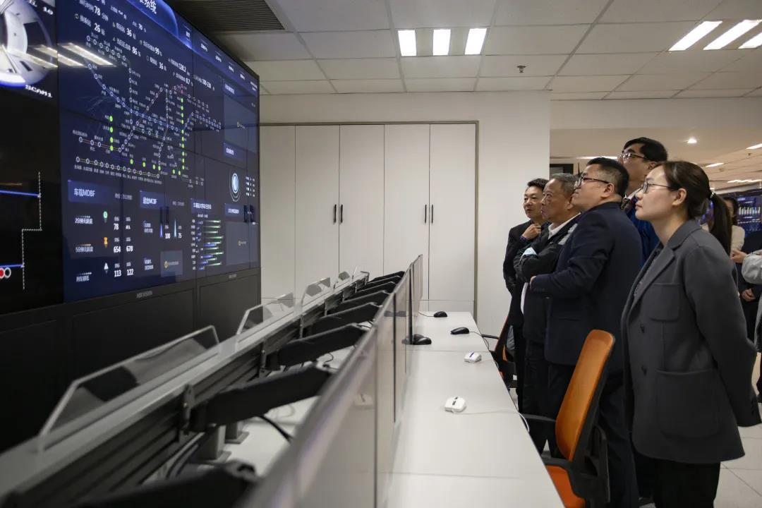 在中央研究院院长周在福带领下,各与会专家现场参观了众合科技智慧城轨先进实验室、一苇数智·智慧交通时空大数据平台、众合科技智能运营中心等。